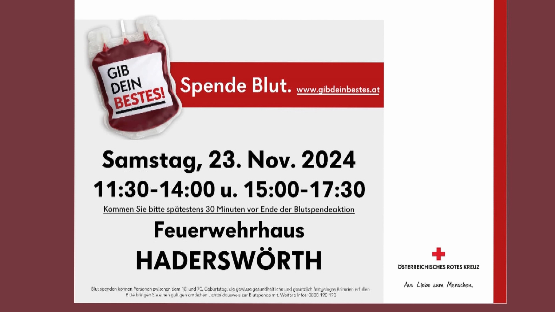 Event Tipp der Woche - Blutspende-Aktion in Haderswörth